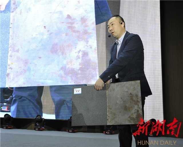 新湖南客户端12月14日讯(记者 曾鹤群 张颐佳) 两个一次性纸杯倒扣在地上,涂上一层不到一毫米的黑色材料后,百多斤重的成人踩在上面不会扁,是不是很神奇?今日下午,在长沙开福区金霞经开区,盾甲新材品牌推介会暨企业战略合作签约仪式隆重举行,长沙盾甲新材料科技有限公司首席专家罗世彬教授演示了这神奇的一幕。