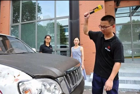 一个普通的鸡蛋,喷上一层厚度不到1毫米的黑色特殊材料后,变成了“铁蛋”,无论怎么猛击,就是敲不破;一辆汽车引擎盖也被涂上这种材料,罗世彬高举扳手猛砸该车,引擎盖毫发无损,而其他部位却被砸得坑洼凹陷。