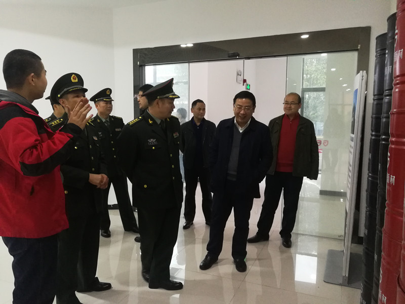 2018年12月20日,长沙警备区刘长进司令员一行莅临盾甲新材考察指导工作。考察期间,刘司令员一行首先听取了公司基本情况汇报。