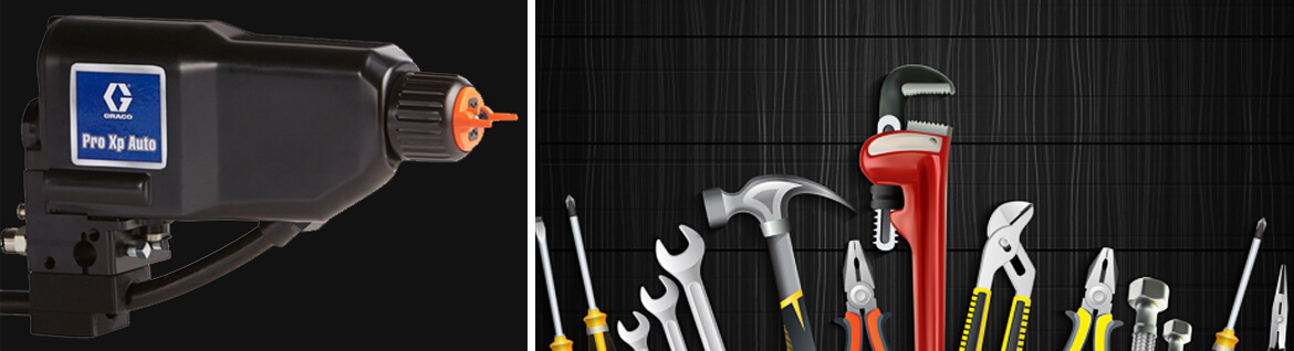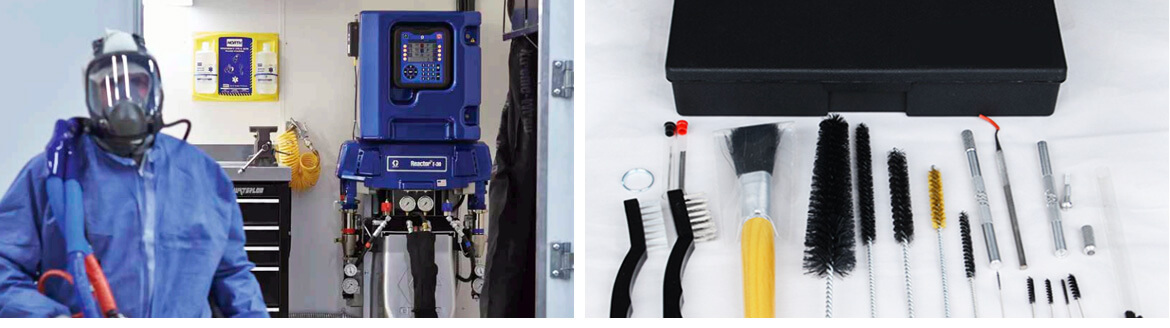 基于盾甲新材的弹性装甲涂层产品特性,我们遴选了专业的喷涂施工设备及配件,为我们的产品应用商提供专业化的施工设备支持。喷涂施工设备及配件主要包括固瑞克双组分一体式喷涂设备以及个性化配备的空气压缩机、喷涂施工防护设备、专业施工套件、专业施工遮蔽及修护用品等。